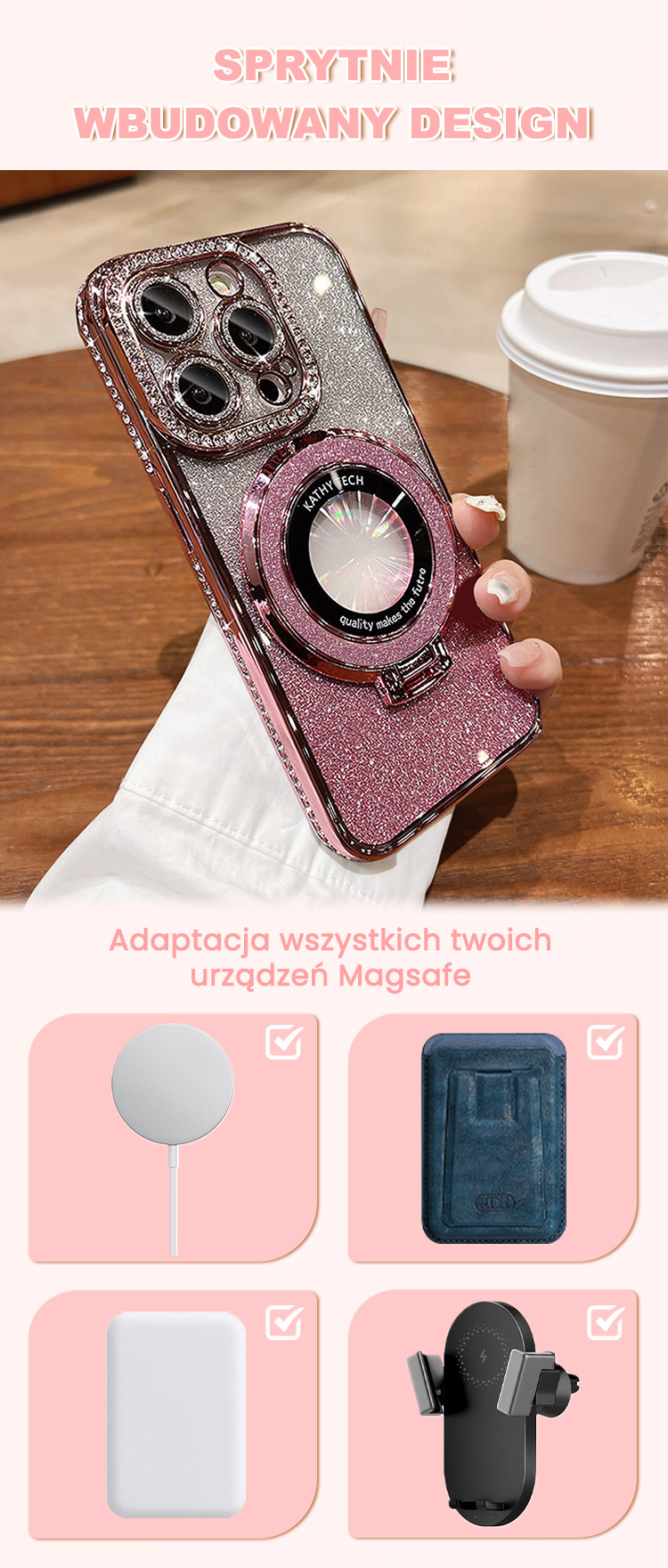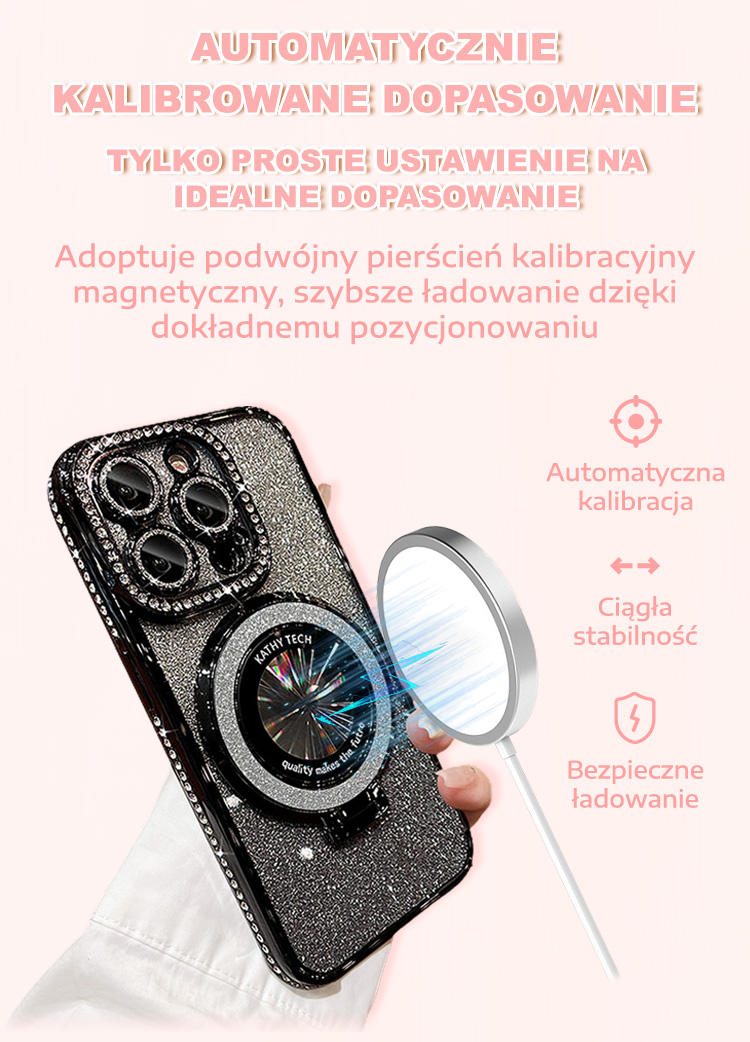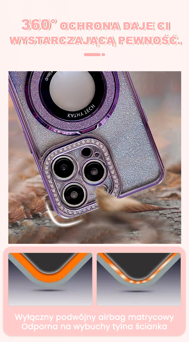 Mágneses iPhone tok csillámos strasszokkal és láthatatlan állvánnyal