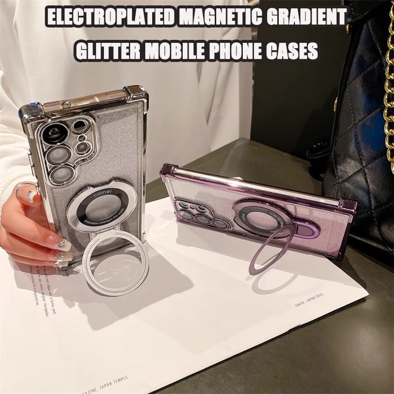 【Láthatatlan állvány mágneses védőtok】 Ez egy új sorozat, amely mágneses gyűrűt és állványt biztosít mobiltelefonokhoz. A beépített alumínium mágnesgyűrű nyitott állapotban stabilan állhat álló vagy fekvő módban, összecsukva pedig teljesen láthatatlan a hátlap (nem akadályozza a mágneses töltés használatát).